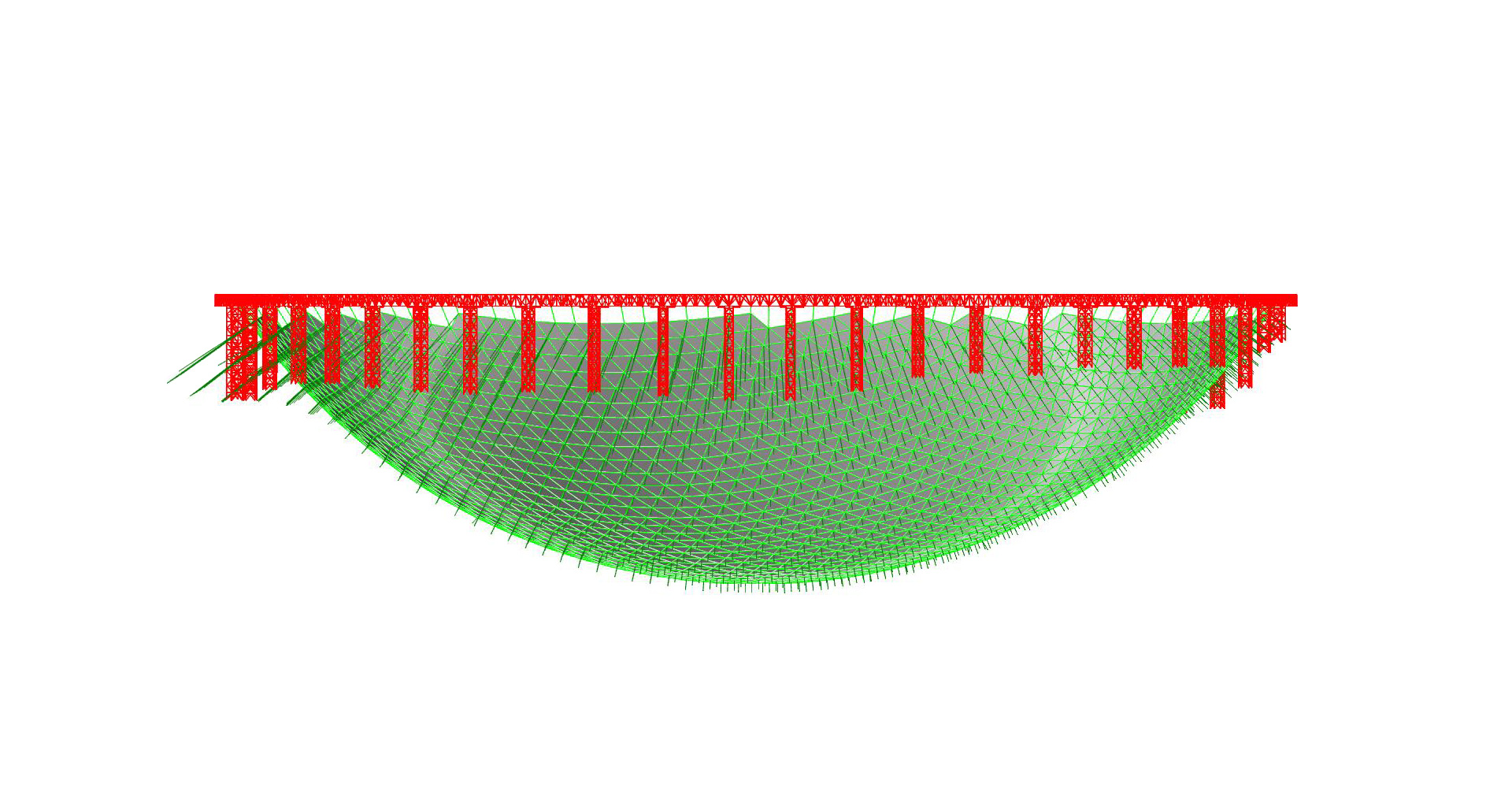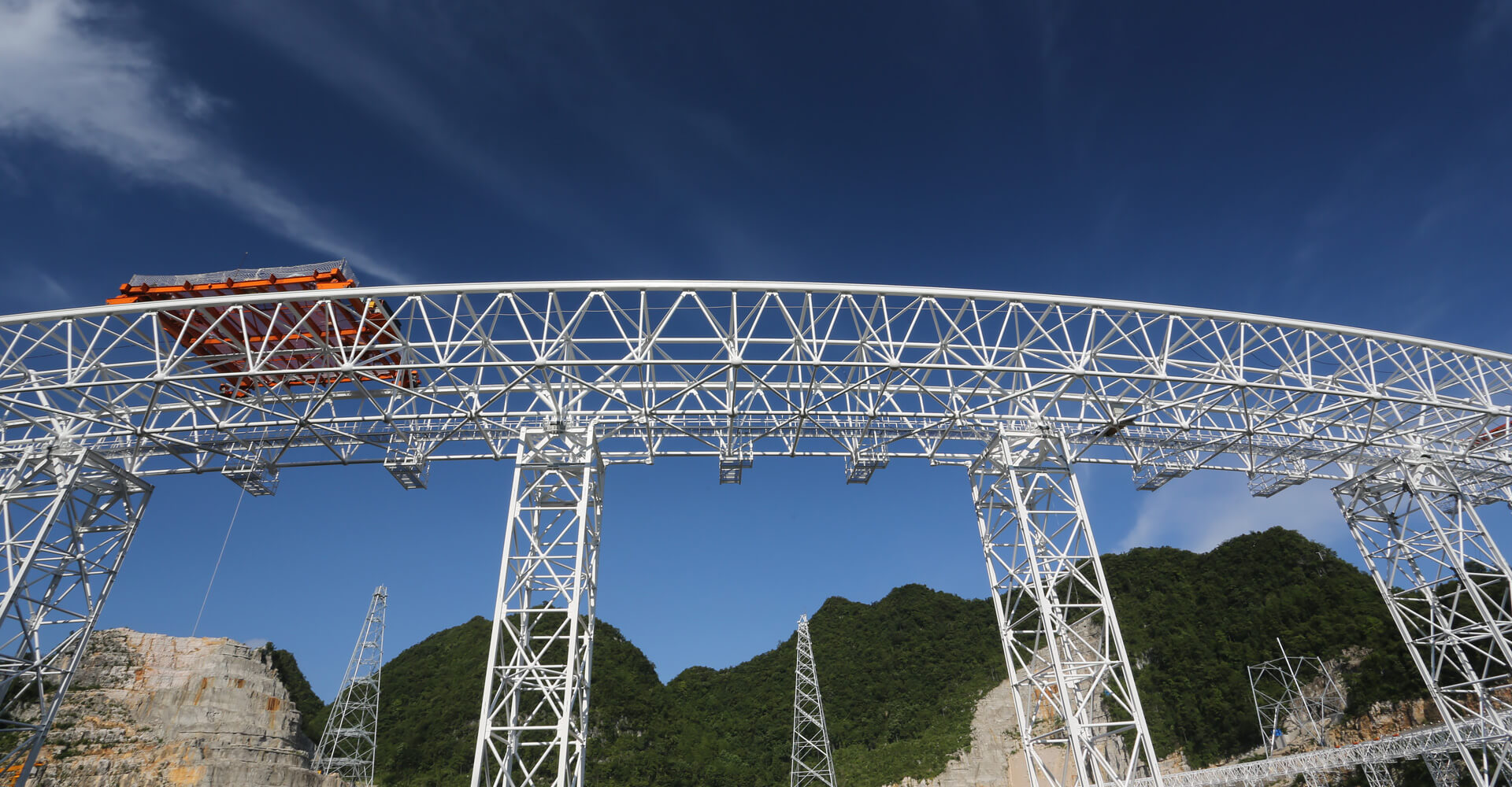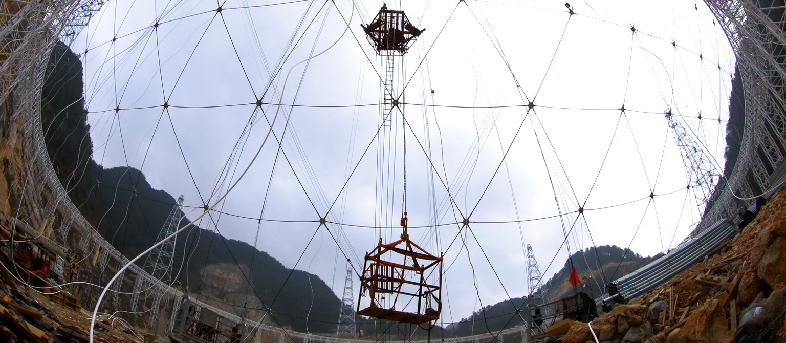 基于上述特點(diǎn),望遠(yuǎn)鏡的建造凸顯三大技術(shù)難題:1、適應(yīng)復(fù)雜山區(qū)地形、具有主動(dòng)變位功能的超大型射電望遠(yuǎn)鏡反射面支承系統(tǒng);2、超大型復(fù)雜空間結(jié)構(gòu)工程應(yīng)滿足望遠(yuǎn)鏡毫米級(jí)精度要求;3、復(fù)雜地形、地貌條件下超大型結(jié)構(gòu)建造。