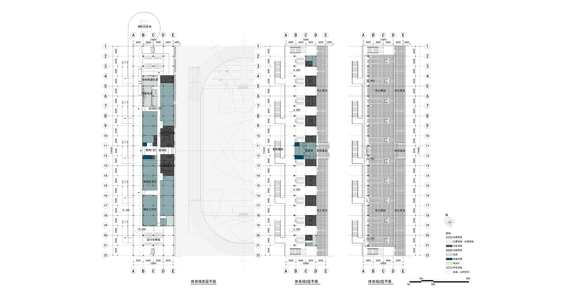強調(diào)多個單體的體育建筑從功能到形式上的整合,同時將場館間的相對消極的空間通過半室外化的空間營造,嘗試變?yōu)榉e極的活動空間,并與城市空間相對接。在后期實際運營期間,功能一體化為使用帶來了很大的便利、空間一體化帶來了鮮明而有力的建筑形態(tài)、建筑虛空成為了提升使用者感受的“亮點空間”。