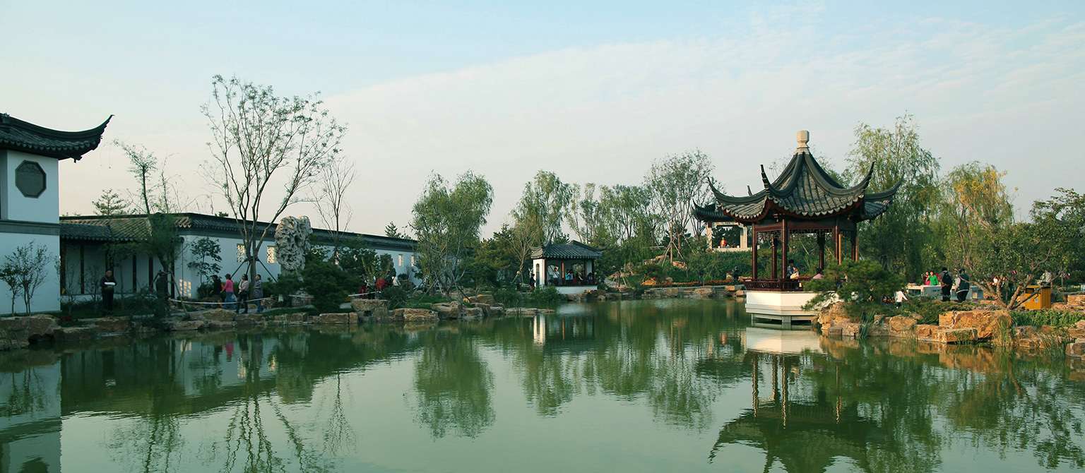 展園分區(qū)以園博館為起點(diǎn),結(jié)合總體布局,以從古到今的時(shí)間序列和由國(guó)內(nèi)到國(guó)外的空間序列進(jìn)行展園布置。