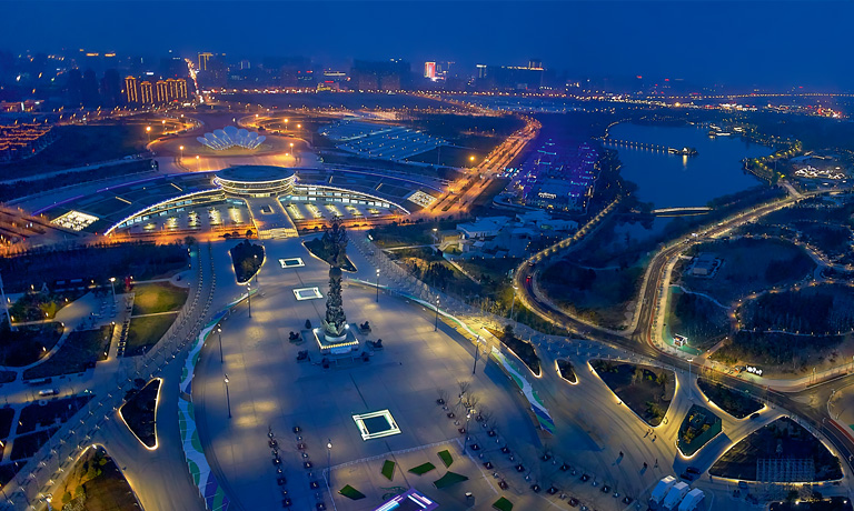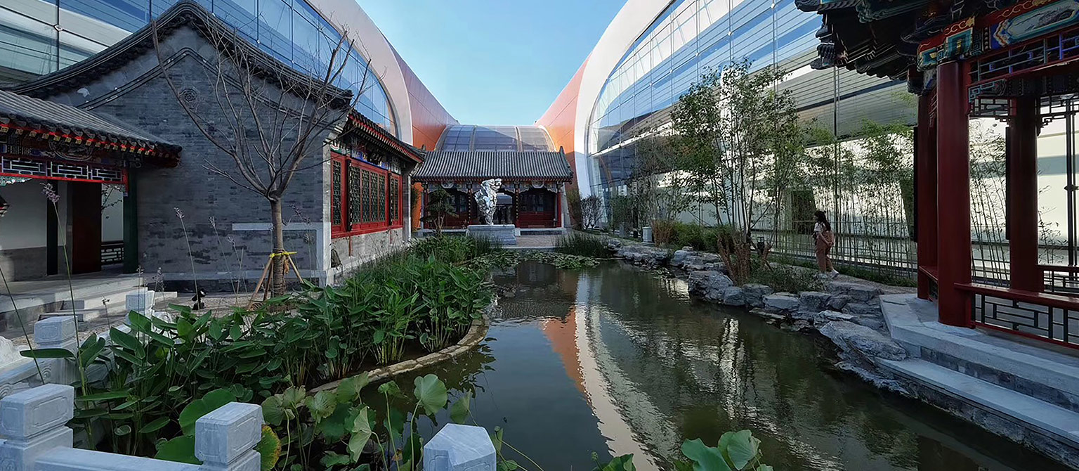 瓷園的設計靈感來源于古代海上絲綢之路,是三進式四合院意境的提煉,園內構建采用磚石、銅質、玻璃和水等材料的現代手法,抽象寫意地表達了傳統(tǒng)形制生活的影響。陶瓷印記的展現,強調CHINA(瓷國)悠久厚重的文化內涵。