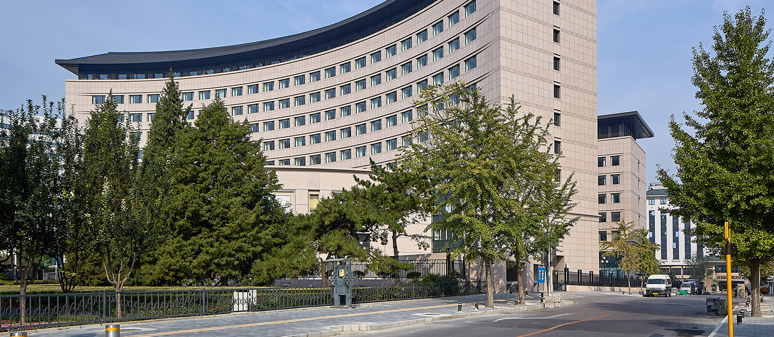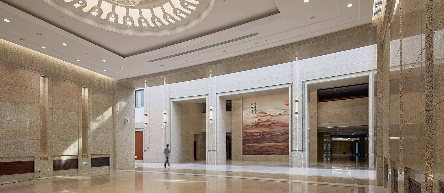 在維持原有建筑形象的同時(shí),進(jìn)行優(yōu)化設(shè)計(jì),尊重婦聯(lián)歷史和本地段建筑文脈,與周?chē)h(huán)境協(xié)調(diào),體現(xiàn)沉穩(wěn),莊重,包容,不張揚(yáng)的理念。布局上因地制宜,將原有主體南側(cè)擴(kuò)建一禮儀大廳,整個(gè)建筑群體近似“工”字形,在東側(cè)圍合為一個(gè)東院,為日常人流車(chē)流提供回轉(zhuǎn)空間,南部為禮儀性出入口空間緊鄰城市綠化帶。
