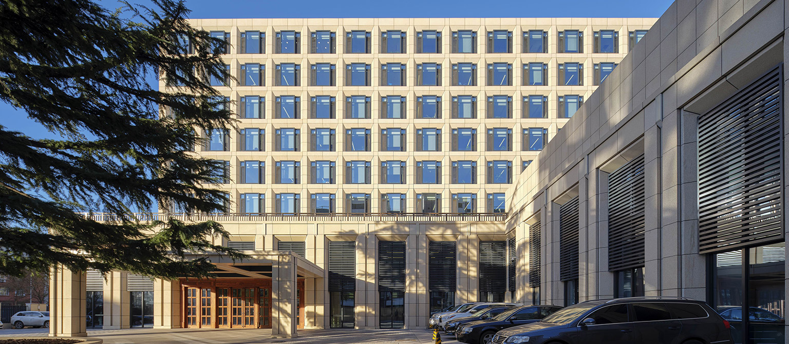 1)拆除重建多功能廳,設(shè)置地下室作為消防水池和泵房等設(shè)備用房;2)主樓南側(cè)新建兩層通高度裙房,與主樓脫開兩個(gè)內(nèi)天井,作為人員休息場(chǎng)所。3)注重光影效果,大堂區(qū)域采用兩層通高的落地玻璃幕墻,塑造了明亮通透的室內(nèi)空間形象。4)對(duì)樓電梯、核心筒進(jìn)行改造,更好的適應(yīng)使用功能的需求,并滿足現(xiàn)行規(guī)范的要求。