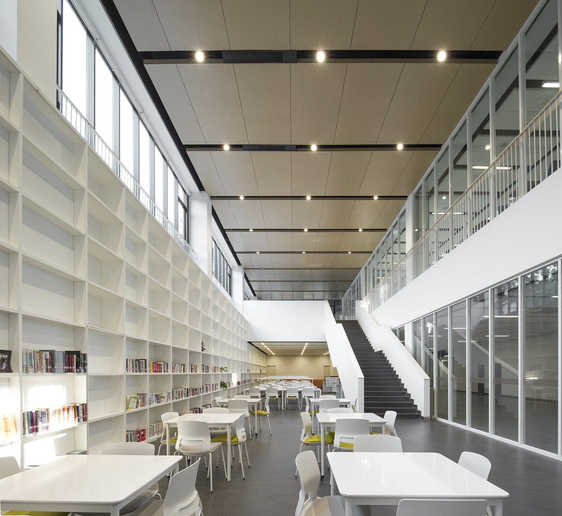 設(shè)計(jì)中將教學(xué)樓、體育館、宿舍三者通過二層平臺(tái)和首層風(fēng)雨廊緊密的聯(lián)系在一起,并將開放式學(xué)習(xí)交流空間——交流討論區(qū)、開放式答疑區(qū)、思維廣場(chǎng)、思維匣子融入教學(xué)樓、宿舍內(nèi)部,在形成多層次“院”——中心庭院、下沉庭院、屋頂庭院的同時(shí),使生活和學(xué)習(xí)空間復(fù)合式的融通在一起。通過這種方式喚醒校園與歷史古都、傳統(tǒng)文化之間的聯(lián)系。在建筑外部,“院”成為學(xué)生重要的課外活動(dòng)場(chǎng)所,也是他們“相互授業(yè)”交流的場(chǎng)所。在建筑內(nèi)部,開放式學(xué)習(xí)交流空間使學(xué)生的生活與學(xué)習(xí)空間進(jìn)一步融通,設(shè)計(jì)上設(shè)置了各式各樣的開放式書架,使“書”隨處可見,學(xué)生可以隨時(shí)隨地的與“書”對(duì)話,所謂課余品書香,正是如此?,F(xiàn)代書院不僅是學(xué)生生活和學(xué)習(xí)的空間,更是他們自由交流、快樂成長(zhǎng)的場(chǎng)所。