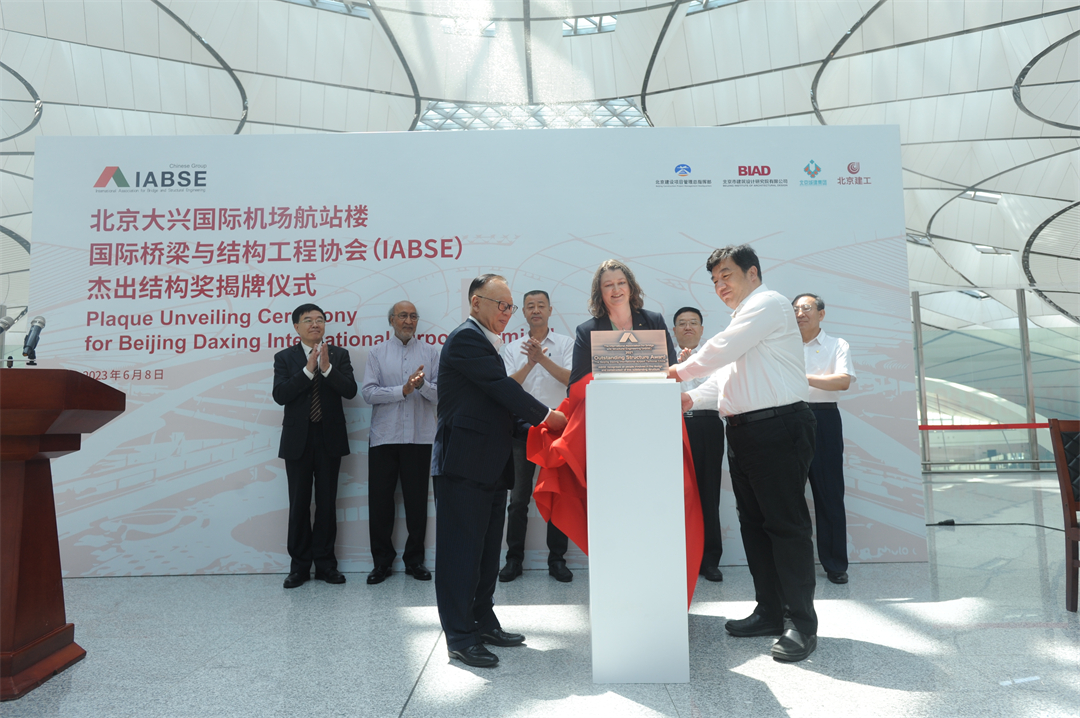 6月8日上午,國際橋梁與結(jié)構(gòu)工程協(xié)會(IABSE)“杰出結(jié)構(gòu)獎”揭牌儀式在北京大興國際機場航站樓舉行,北京大興國際機場航站樓憑借工程建設(shè)中展現(xiàn)的可持續(xù)性、創(chuàng)新性、方案卓越性和結(jié)構(gòu)創(chuàng)新性,獲得“杰出結(jié)構(gòu)獎”。