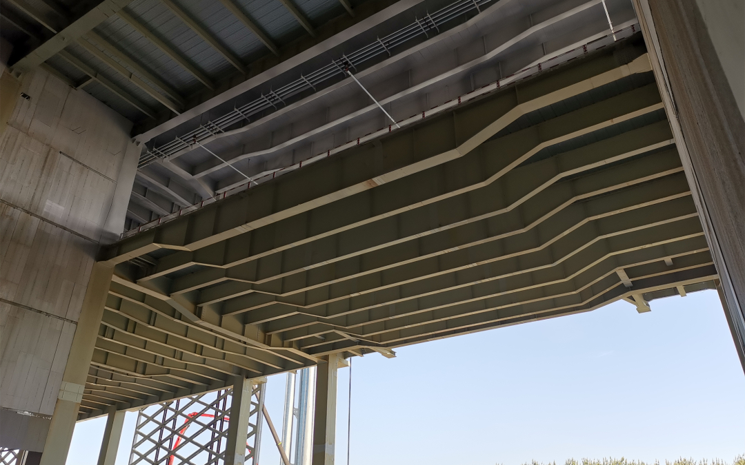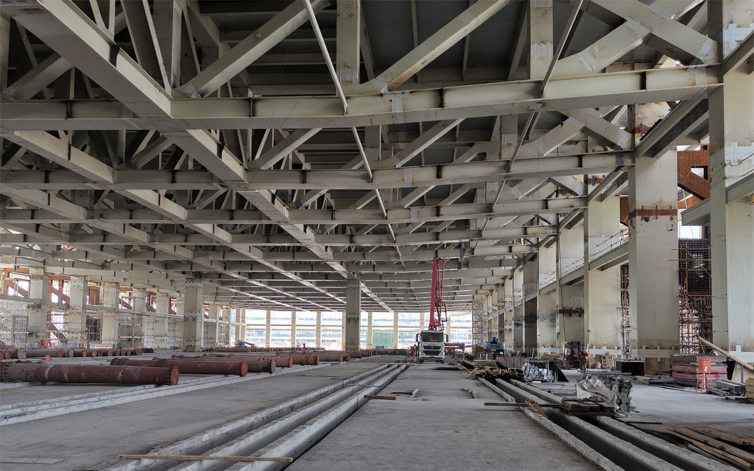 北京建院設(shè)計團隊創(chuàng)新性地采用了下部鋼框架-組合墻-轉(zhuǎn)換桁架、上部鋼框架-支撐-索拱屋面的新型特殊結(jié)構(gòu)體系,滿足了高空間、大跨度、疊層使用等要求,在適應(yīng)建筑功能、成就建筑效果的同時,平衡結(jié)構(gòu)效率,極大的節(jié)省了土地資源;屋面采用的雙拉桿扁平索拱形式簡潔、受力合理,力與美兼具。通過創(chuàng)新性結(jié)構(gòu)思維、細(xì)致周密的計算分析以及必要的試驗驗證及施工監(jiān)測手段,最終完成了這一“基于高效多功能性豎向疊層布置的大空間結(jié)構(gòu)創(chuàng)新設(shè)計”工作。在施工建造過程中,北京建院設(shè)計團隊與施工單位緊密配合,對轉(zhuǎn)換結(jié)構(gòu)及復(fù)雜屋面進(jìn)行了細(xì)致的施工模擬分析,驗證施工方案的可行性和安全性,為主體結(jié)構(gòu)如期竣工奠定了堅實的基礎(chǔ)。