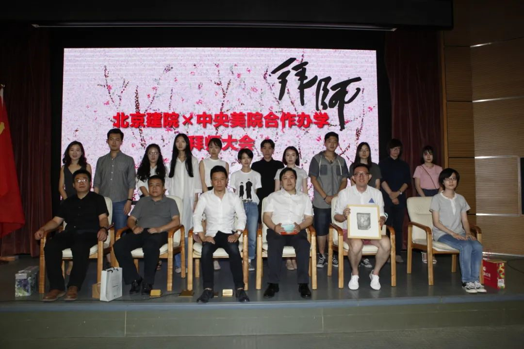 中央美術學院黨委副書記王曉琳、張寶瑋、韓光煦為師父代表頒發(fā)聘書