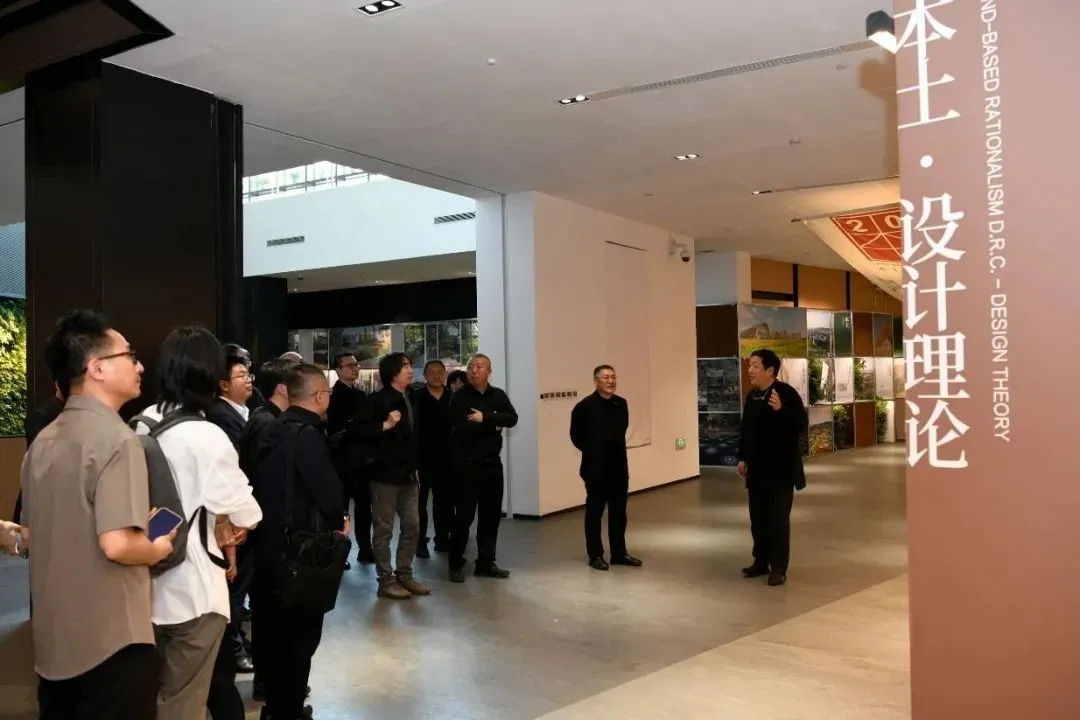 崔愷院士為北京建院訪問團隊詳細導覽了“成長——本土設(shè)計研究中心20年”展覽,從“文脈傳承、遺產(chǎn)保護、城市更新、風景融入、綠色導向、生活引領(lǐng)、鄉(xiāng)村振興”等七個主題,闡釋了以“本土設(shè)計”理念為核心的展覽脈絡(luò)。