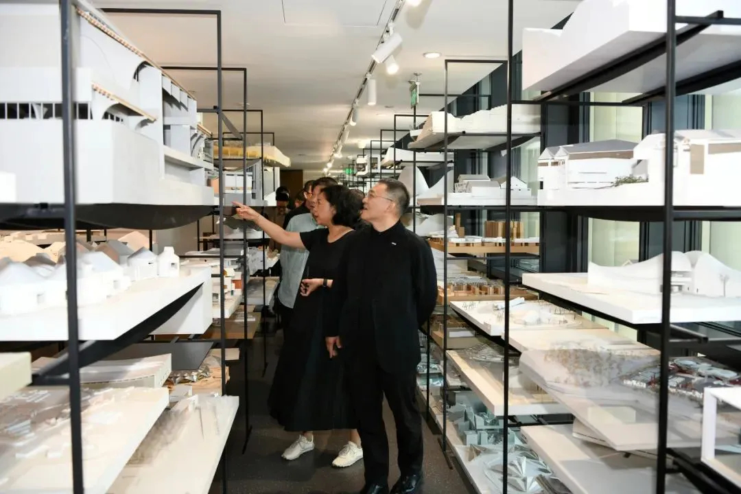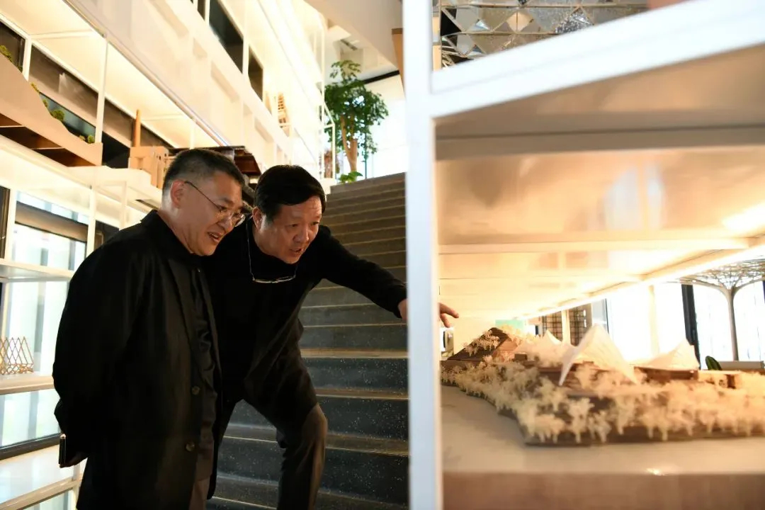 隨后,北京建院訪問團隊參觀了勝景幾何設(shè)計研究中心和本土設(shè)計研究中心在工作空間內(nèi)的作品展示,勝景幾何中心張音玄總建筑師和本土設(shè)計研究中心任祖華主任帶領(lǐng)參觀并做深入導覽。