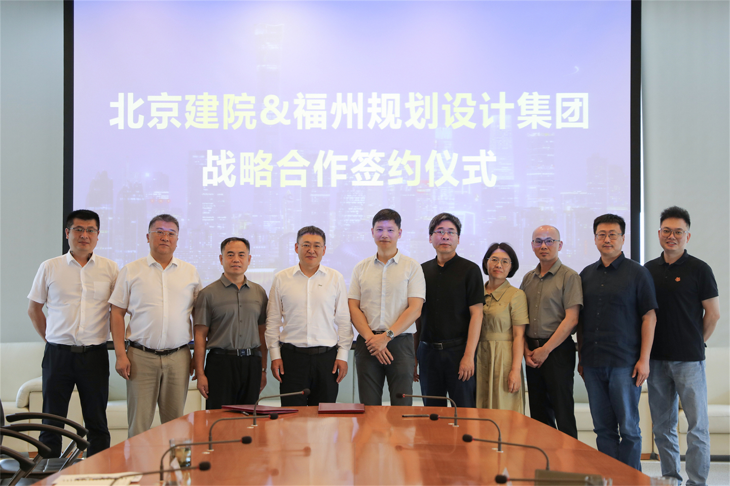 2024年6月14日,北京市建筑設(shè)計(jì)研究院股份有限公司與福州市規(guī)劃設(shè)計(jì)研究院集團(tuán)有限公司簽署戰(zhàn)略合作協(xié)議,北京建院黨委書記、董事長(zhǎng)徐全勝,副總經(jīng)理王樸軍;冶城集團(tuán)黨委委員、副總經(jīng)理、董事林功波出席簽約儀式。