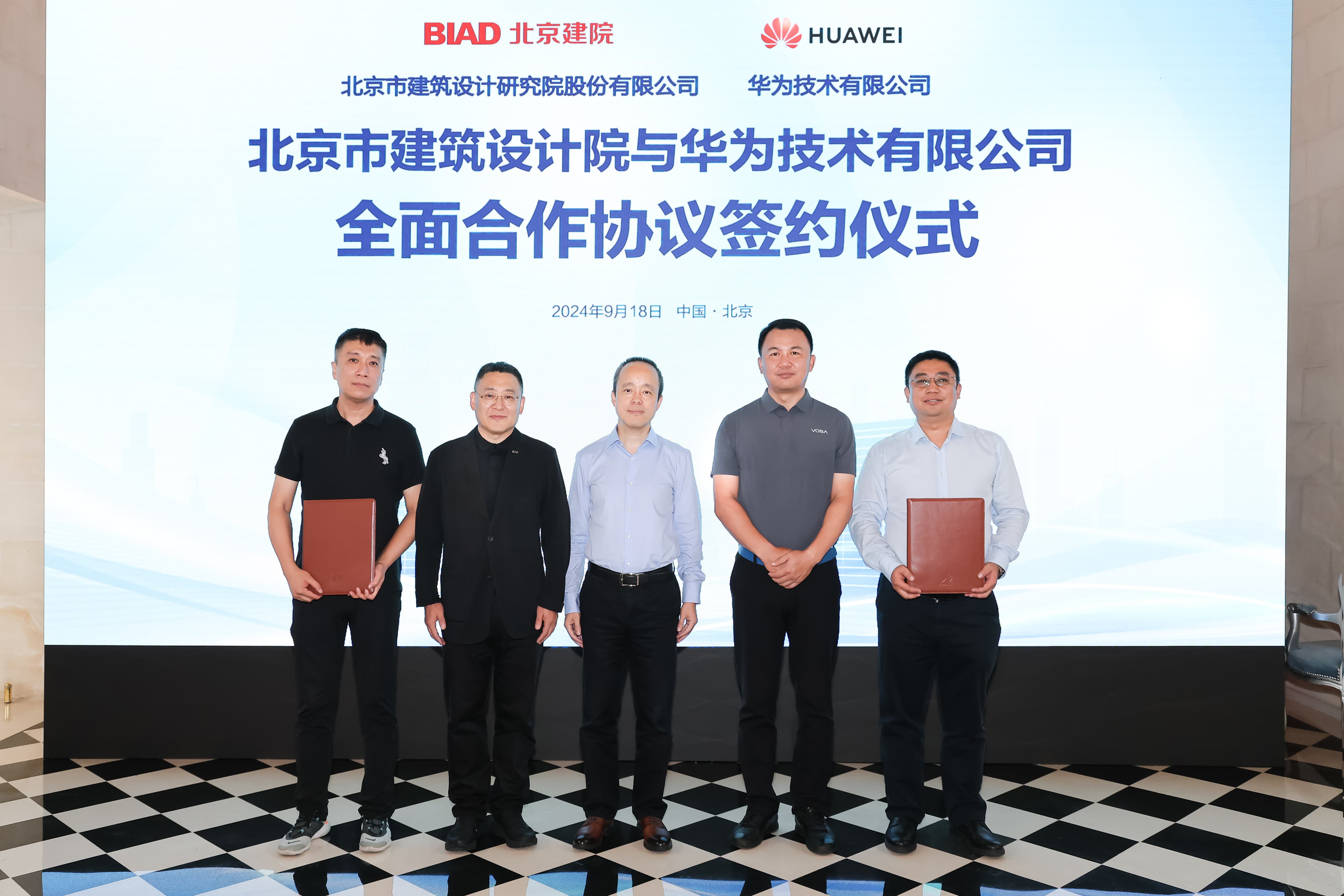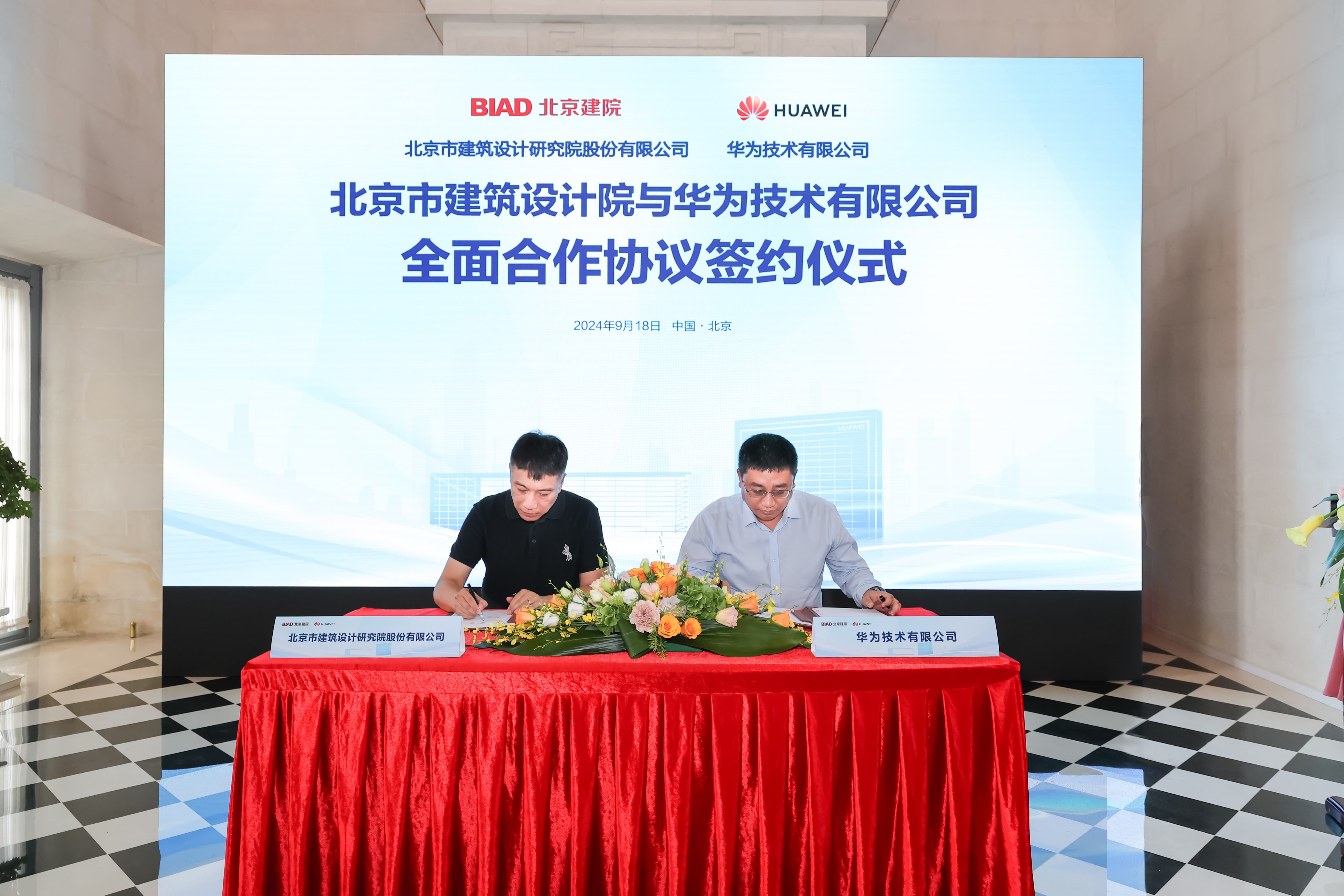 2024年9月18日,北京市建筑設(shè)計研究院股份有限公司、華為技術(shù)有限公司全面合作協(xié)議簽約儀式在華為北京會展中心隆重舉行。北京建院黨委書記、董事長、總建筑師徐全勝,華為北京政企業(yè)務(wù)部部長宋保民,北京藍(lán)海華業(yè)科技股份有限公司董事長逯金重出席簽約儀式。