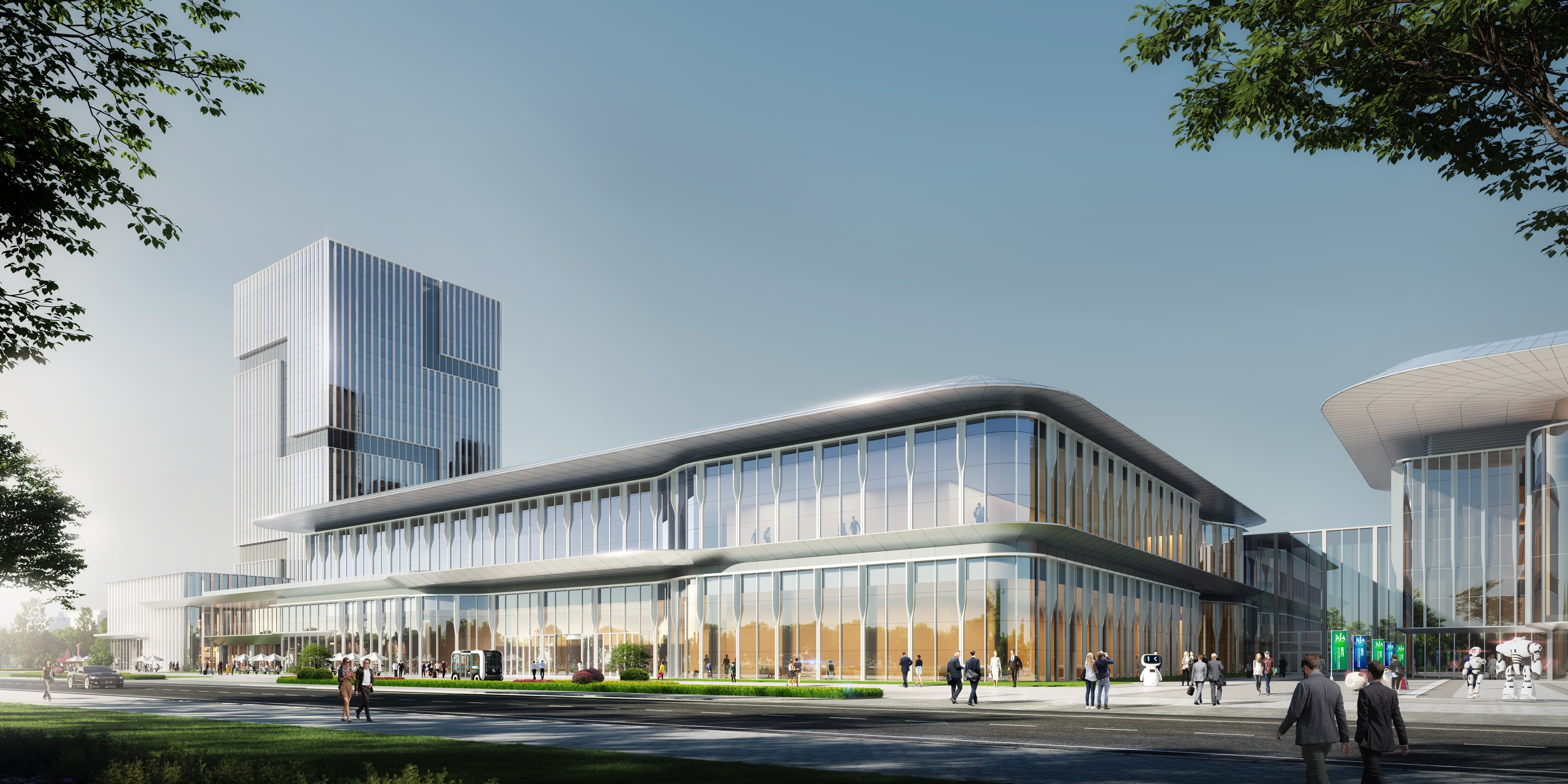北人亦創(chuàng)國際會展中心以“智芯相連”為核心設(shè)計理念,設(shè)計將“芯片”與“連接”的概念融入其中。每一棟建筑都是一個巨大的智能交互設(shè)備,“連接”空間作為“設(shè)備”之間的紐帶,確保建筑內(nèi)部空間與外部環(huán)境的聯(lián)系共生。酒店、配套商業(yè)、會議中心、展覽中心等多種功能通過共享連廊的有機連接,激發(fā)互動交流場景,形成的“功能矩陣”,面向城市開放多個便捷接口,在會展空間中實現(xiàn)高品質(zhì)交互。