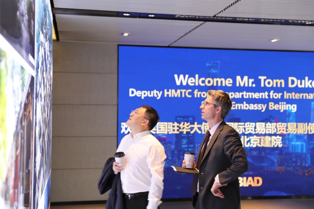 北京建院黨委書記、董事長徐全勝對杜濤副使節(jié)一行到訪表示歡迎。他表示,此次來訪,一方面是對北京建院過去與英國高校、設(shè)計(jì)機(jī)構(gòu)多次合作成果的認(rèn)可,同時(shí)也為下一步中英企業(yè)在低碳環(huán)保領(lǐng)域開展深度合作打下了良好的基礎(chǔ)。在”碳達(dá)峰、碳中和”的新要求下,在中英兩國合作的框架下,北京建院將積極與零碳工廠等優(yōu)秀英國企業(yè)圍繞綠色、節(jié)能、環(huán)保領(lǐng)域深入合作,共同研究打造城市級零碳產(chǎn)業(yè)園。