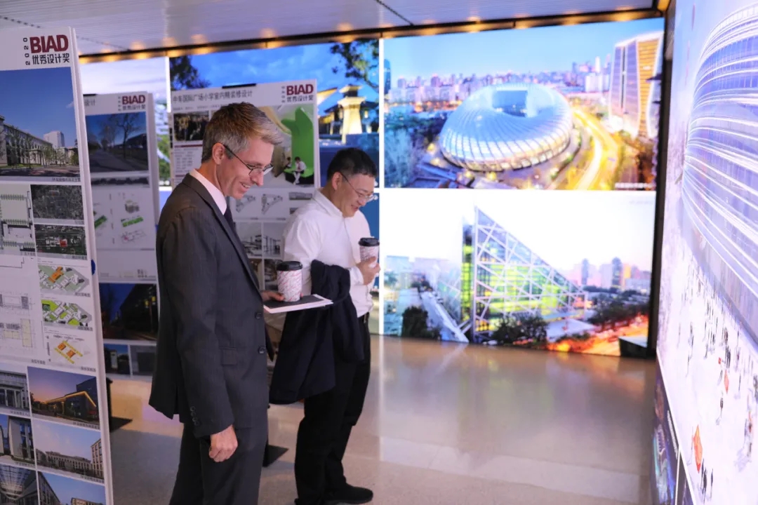 隨后,杜濤一行又來到B座1層展示廳,參觀了北京建院近年來的優(yōu)秀工程,了解了北京建院在建筑規(guī)劃設(shè)計(jì)、建筑遺址保護(hù)和城市更新領(lǐng)域的成就。