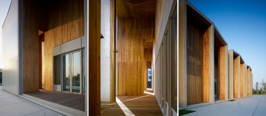 建筑位于北京建筑大學(xué)大興新校區(qū)內(nèi),是學(xué)生宿舍區(qū)內(nèi)的一個(gè)小型公共建筑。建筑設(shè)計(jì)最核心的是功能轉(zhuǎn)變,校園建設(shè)初期,建筑功能定位宿舍區(qū)配套商業(yè)設(shè)施,校園基本形成后,其功能轉(zhuǎn)換為一個(gè)多功能建筑。結(jié)構(gòu)為鋼筋混凝土,為了表達(dá)建筑機(jī)核的邏輯關(guān)系,屋頂、切割面為清水混凝土,切口內(nèi)為木質(zhì)外墻。